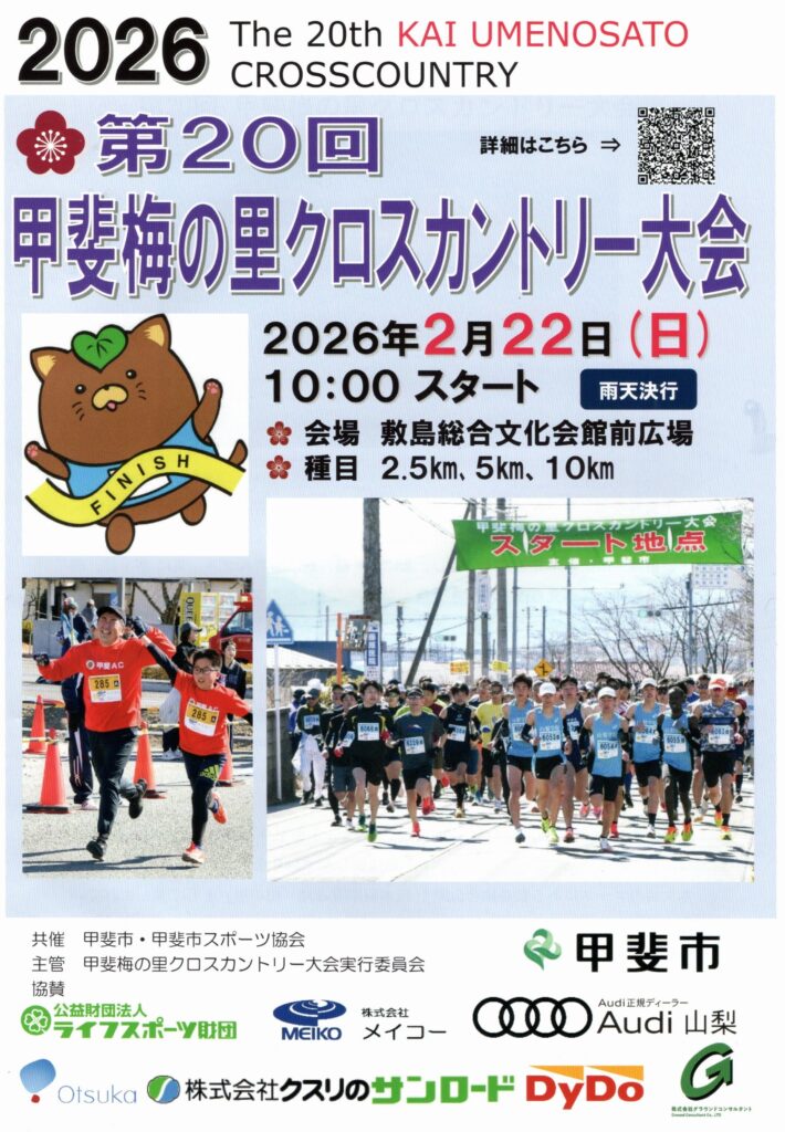 令和8年2月22日(日)、甲斐市と甲斐市スポーツ協会が共催する「第20回甲斐梅の里クロスカントリー大会」に当社が協賛企業として参加いたしました。